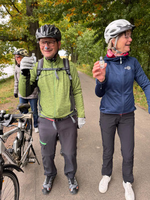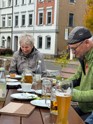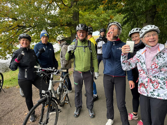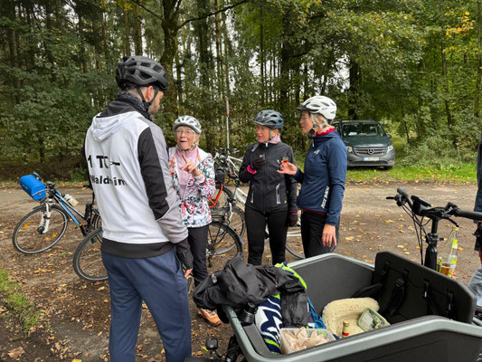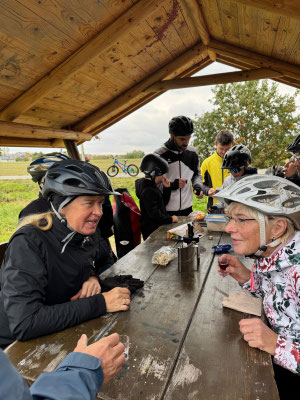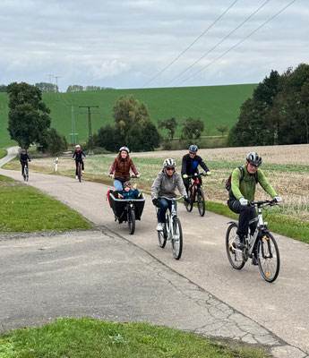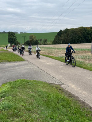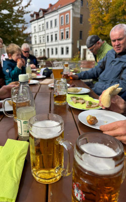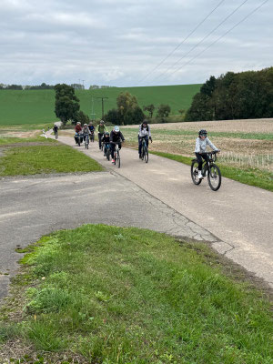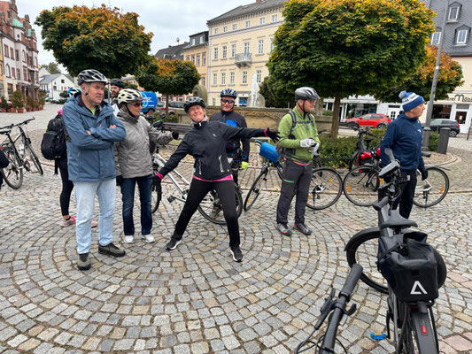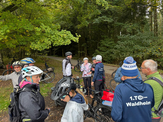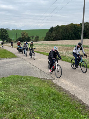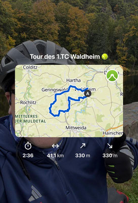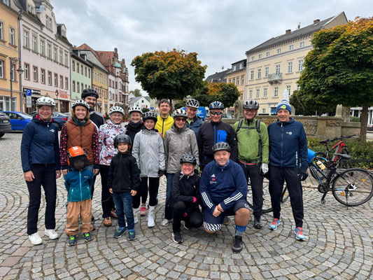 Am Sonntag den 12.10. um 10 Uhr fanden sich immerhin 16 TCW-Mitglieder zur diesjährigen TCW-Radtour auf dem Waldheimer Markt ein. Bei kühlen aber trockenem Wetter ging es für die 4-77 jährigen egal ob mit reiner Muskelkraft oder Akku-unterstützt oder nur als Mitfahrer im Lastenrad für alle zunächst über Gilsberg nach Reinsdorf und in Richtung Schweikershain. Bergauf wurde die Körpertemperatur ohnehin gut nach oben reguliert, nach langen Abfahrten wurde gestoppt und ein oder mehrere äußerlich kühle aber doch innerlich einheizende Kurze gereicht. Weiter ging es über Crossen nach Milkau und schließlich über den neuen Radweg von Arras aus nach Geringswalde. Dort erwartete alle tapferen Radler nach ca. 25 Kilometern die Möglichkeit sich zu stärken. Der Heimatverein Geringswalde betreibt über die Sommermonate dort nämlich eine top sanierte Verpflegungstation in historischem Bahnhofsgewand, so dass Hunger und Durst in geselliger Runde gestillt werden konnte. Mit vollen Bäuchen von Wurst und Kuchen ging es letzendlich wieder nach Waldheim zurück wo alle ohne Panne oder Stürze Wohlbehalten nach ca. 35km wieder in der Heimat eintrafen. Alle erhielten kurz vor Schluss noch jeweils 5 Stempel für die TCW-Fahrradaktion, welche noch bis Ende Oktober läuft - dabei ist jeder einzelne Stempel wichtig damit am Ende für unseren TCW hoffentlich ein hübsches Spendensümmchen rausspringt.